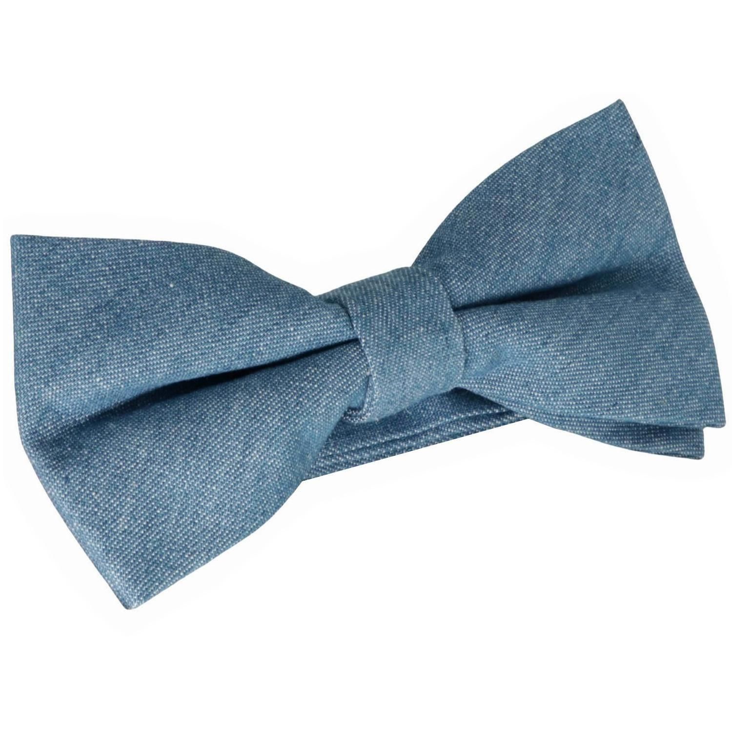 カジュアルなデニム風の質感の蝶ネクタイ。
