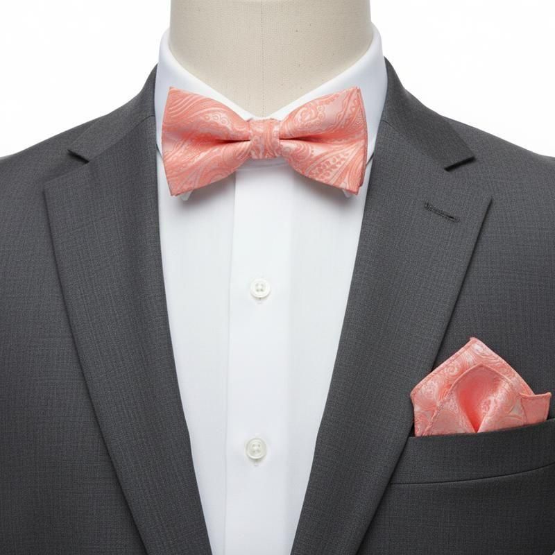 簡単にドレスアップ出来るボウタイ&ポケットチーフのセットです。