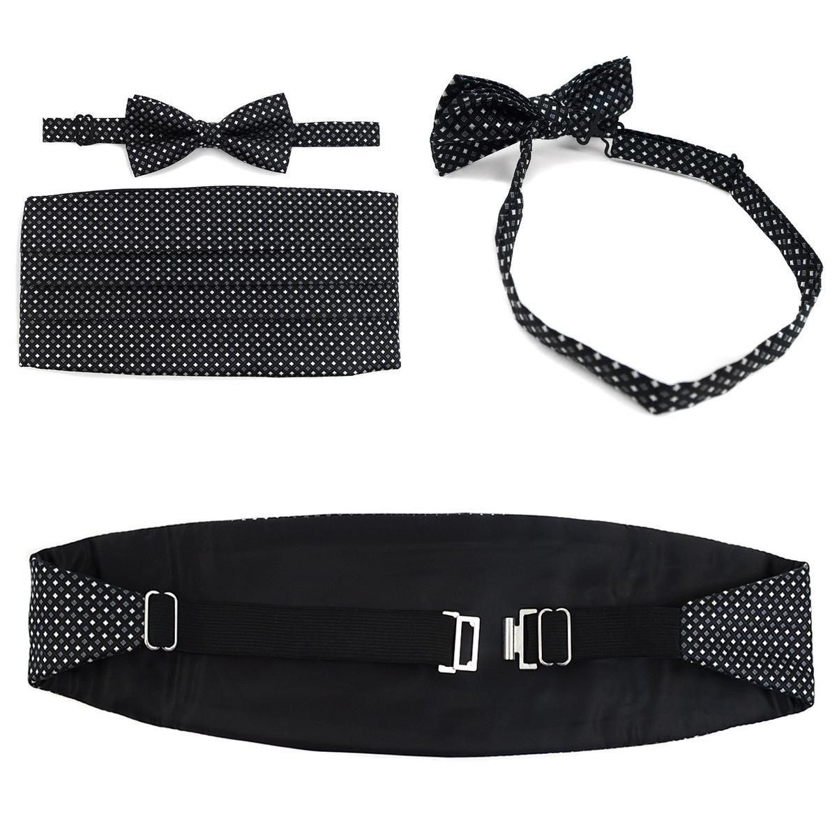 光沢の美しい本格的な黒無地のカマーバンドと蝶ネクタイのセット。