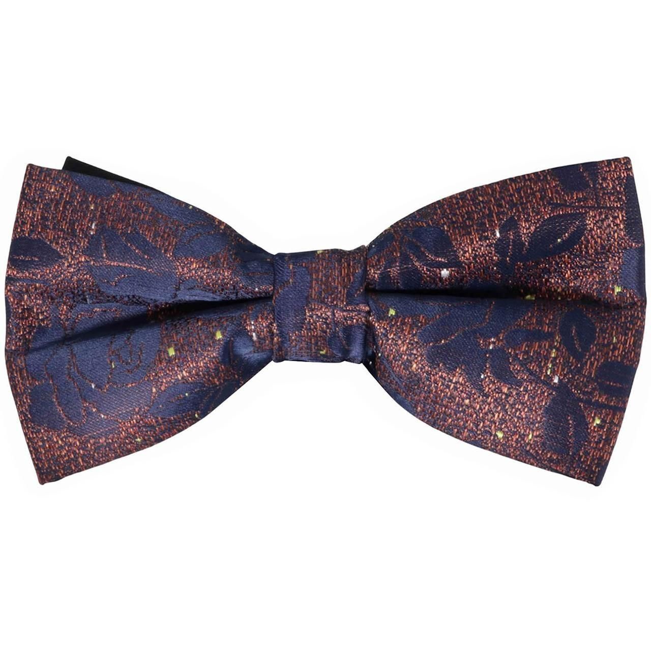 ネイビー コーラルオレンジ フラワー 植物模様 蝶ネクタイ ボウタイ