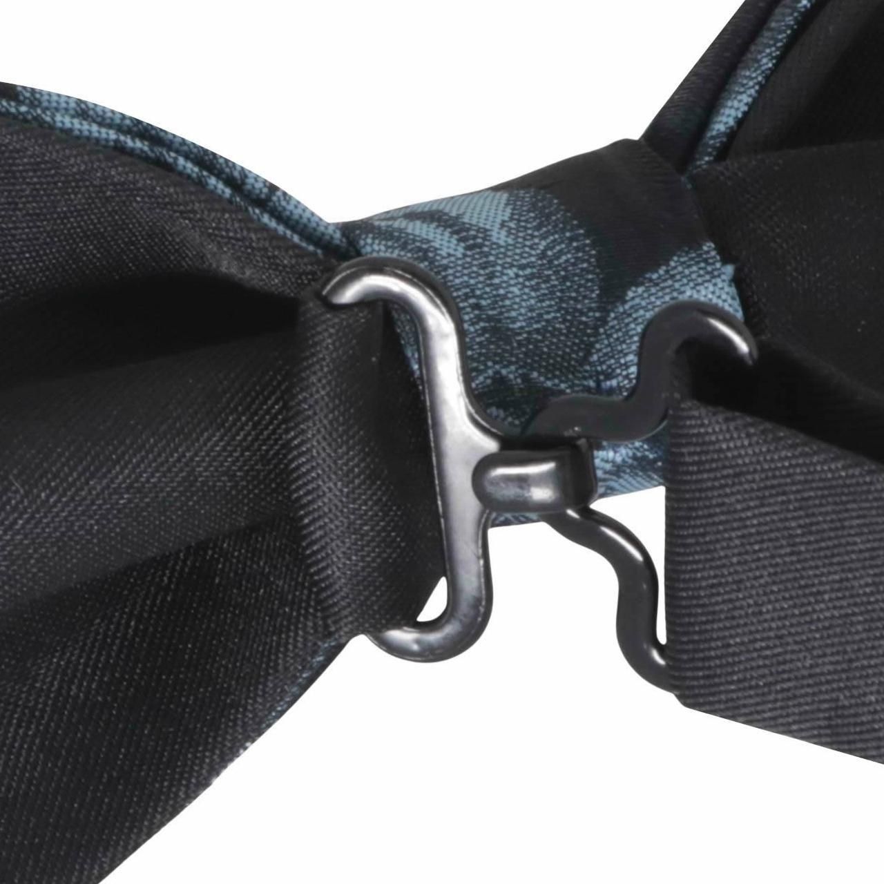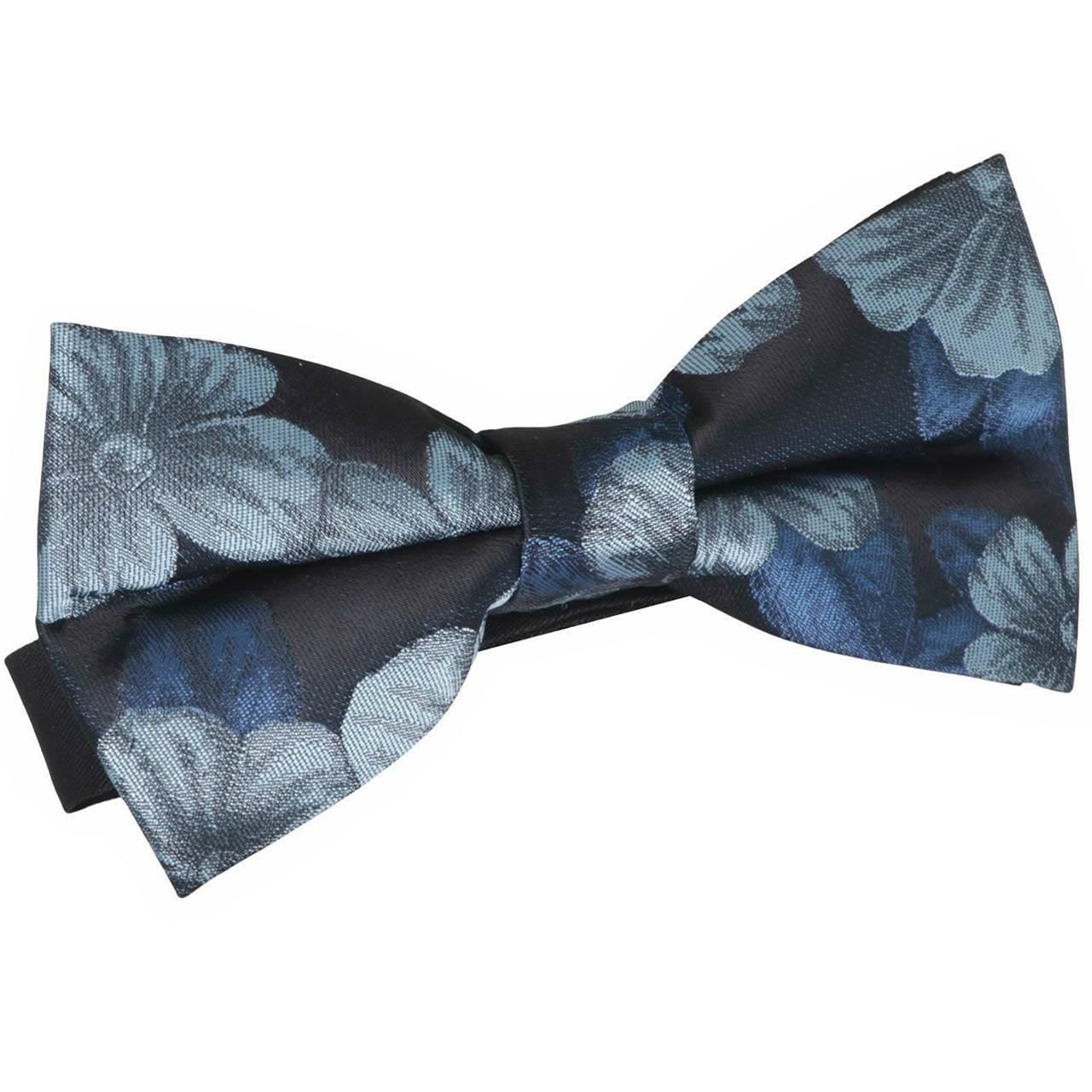 ブラックのベースにブルーとライトブルーの美しい花模様の蝶ネクタイ。