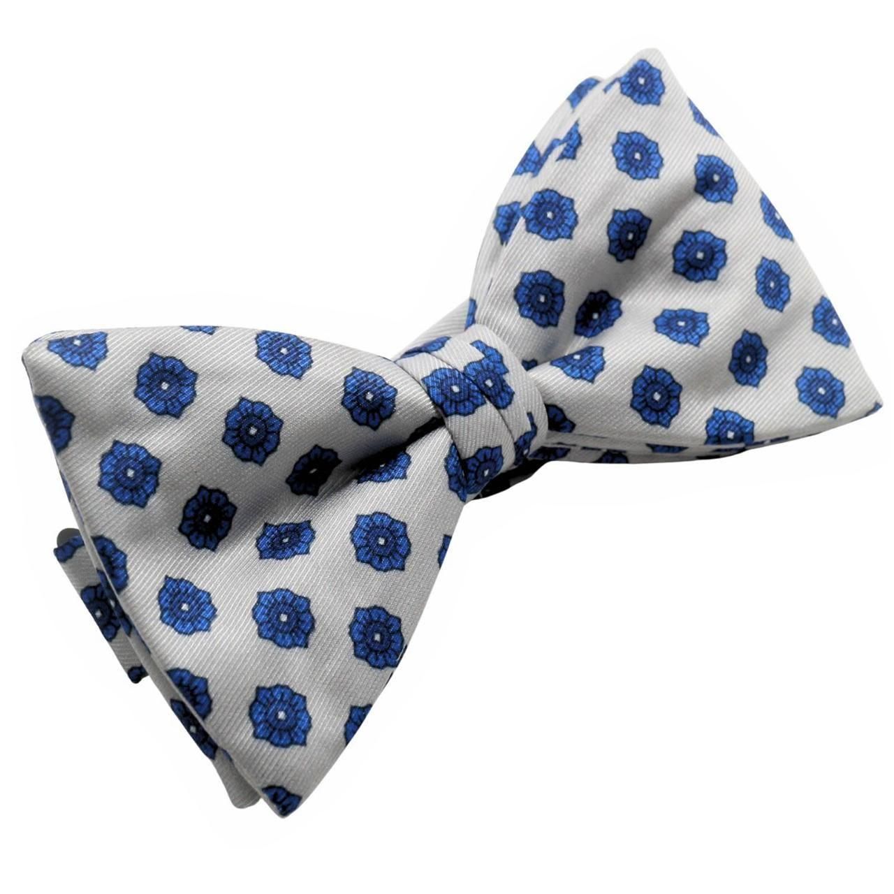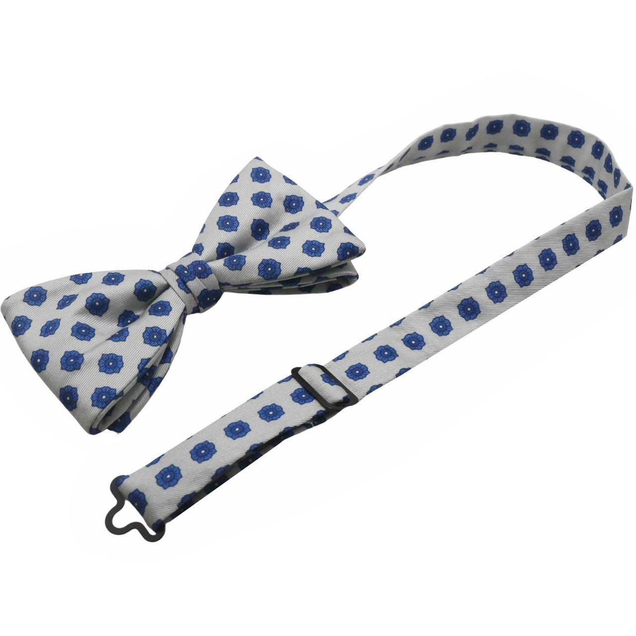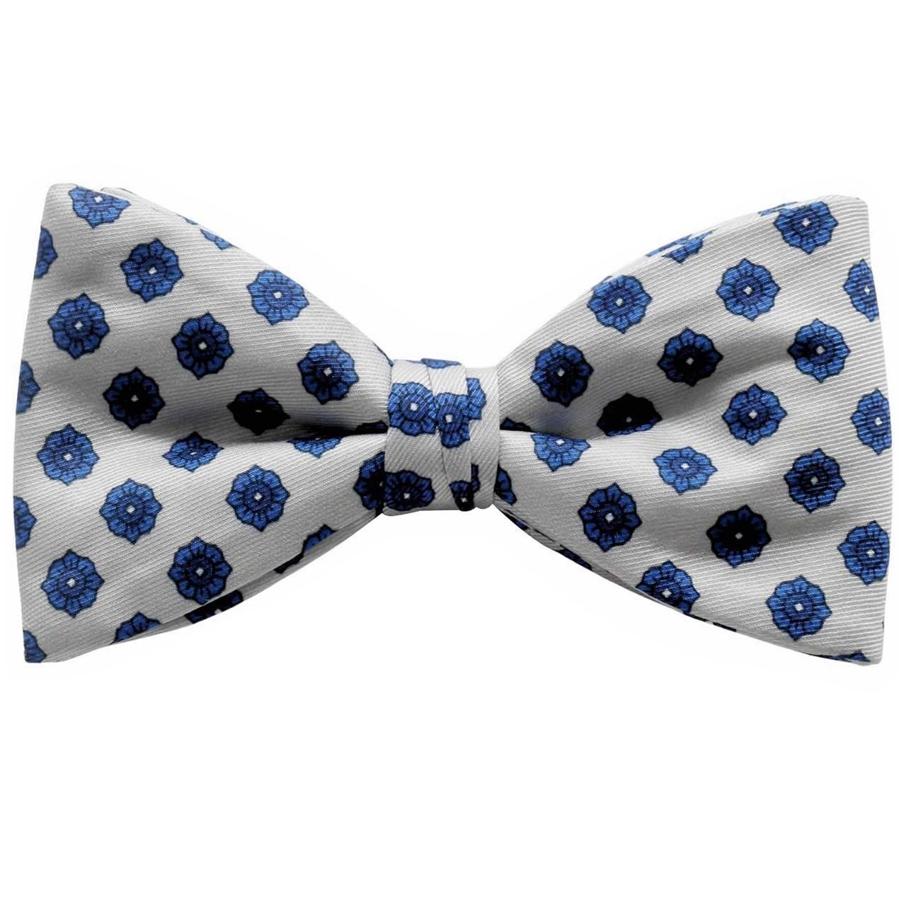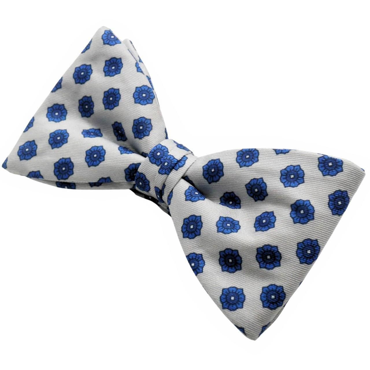 ライトグレー ブルー フローラル 紋章 花柄 蝶ネクタイ ボウタイ