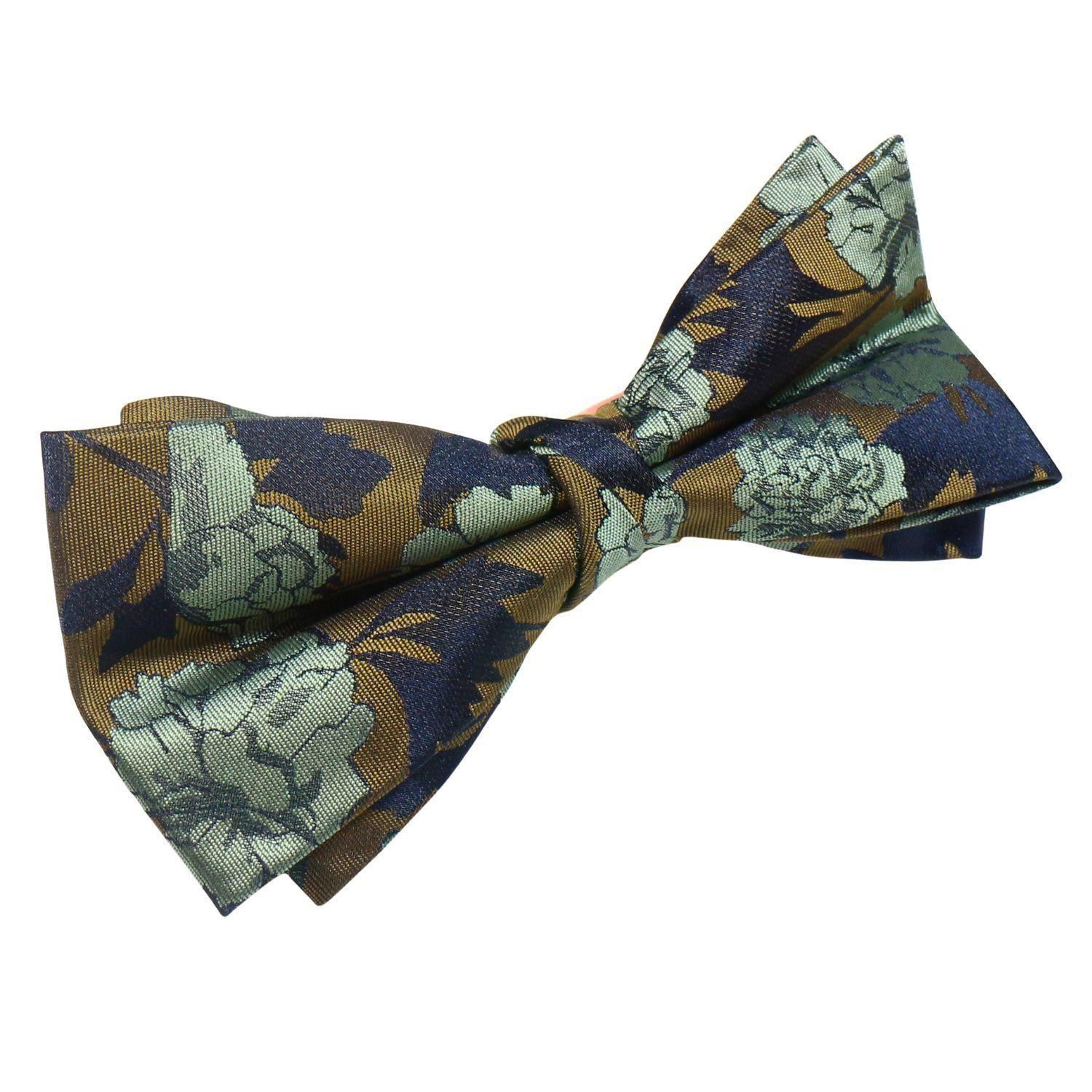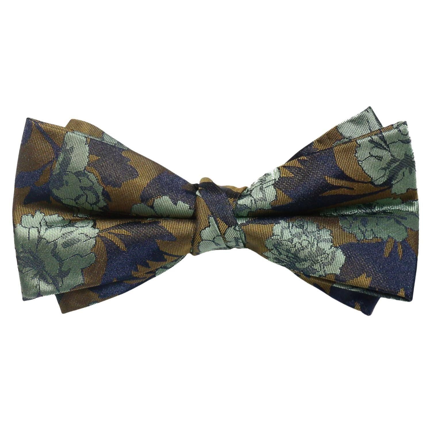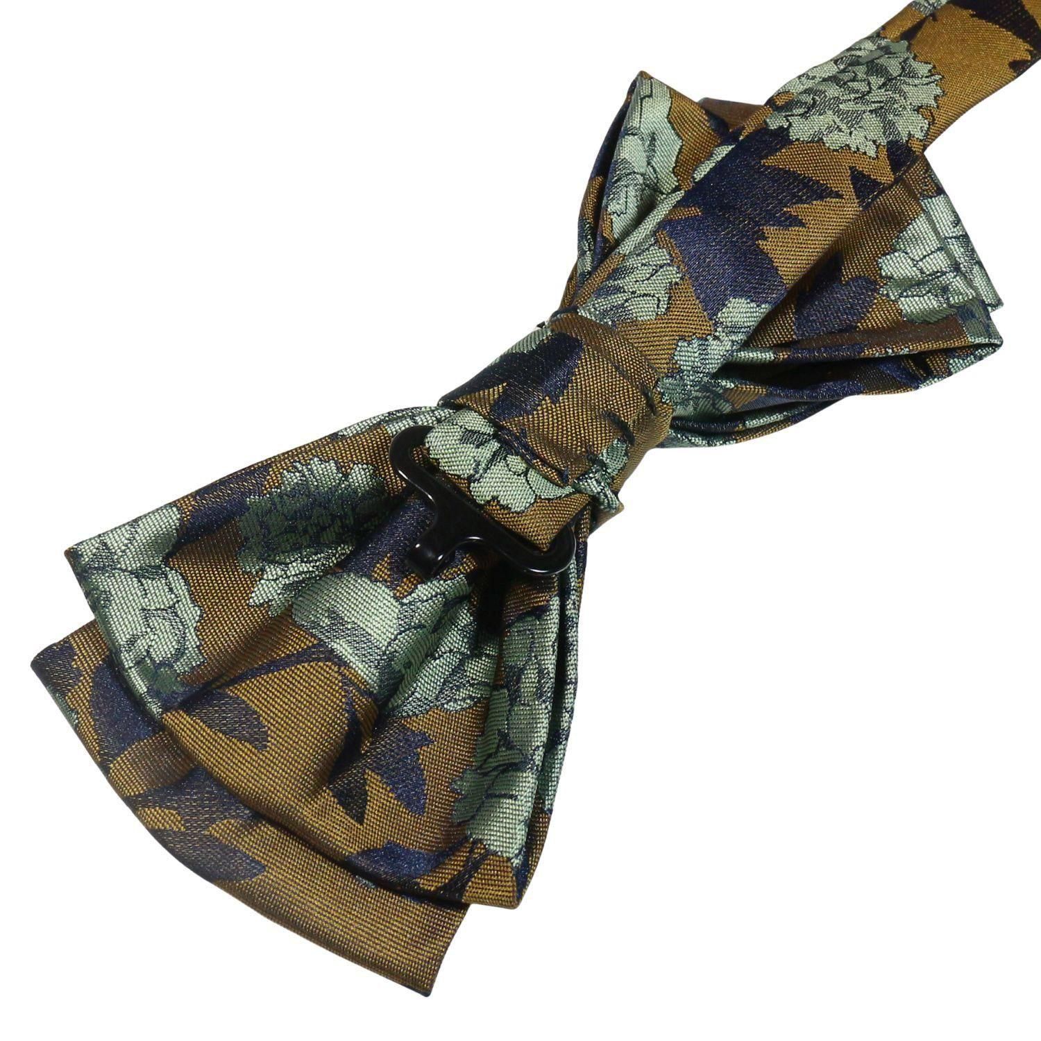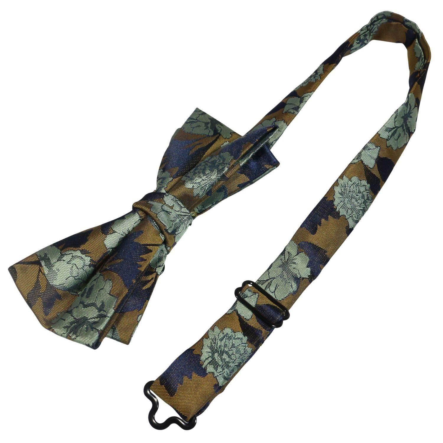 カーキ モスグリーン 花柄 フラワー 変形 蝶ネクタイ ボウタイ