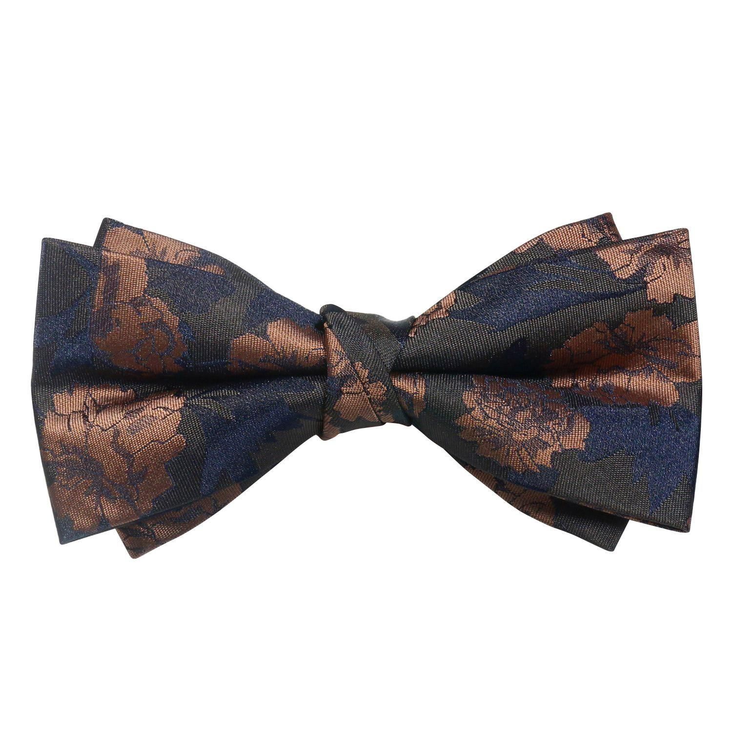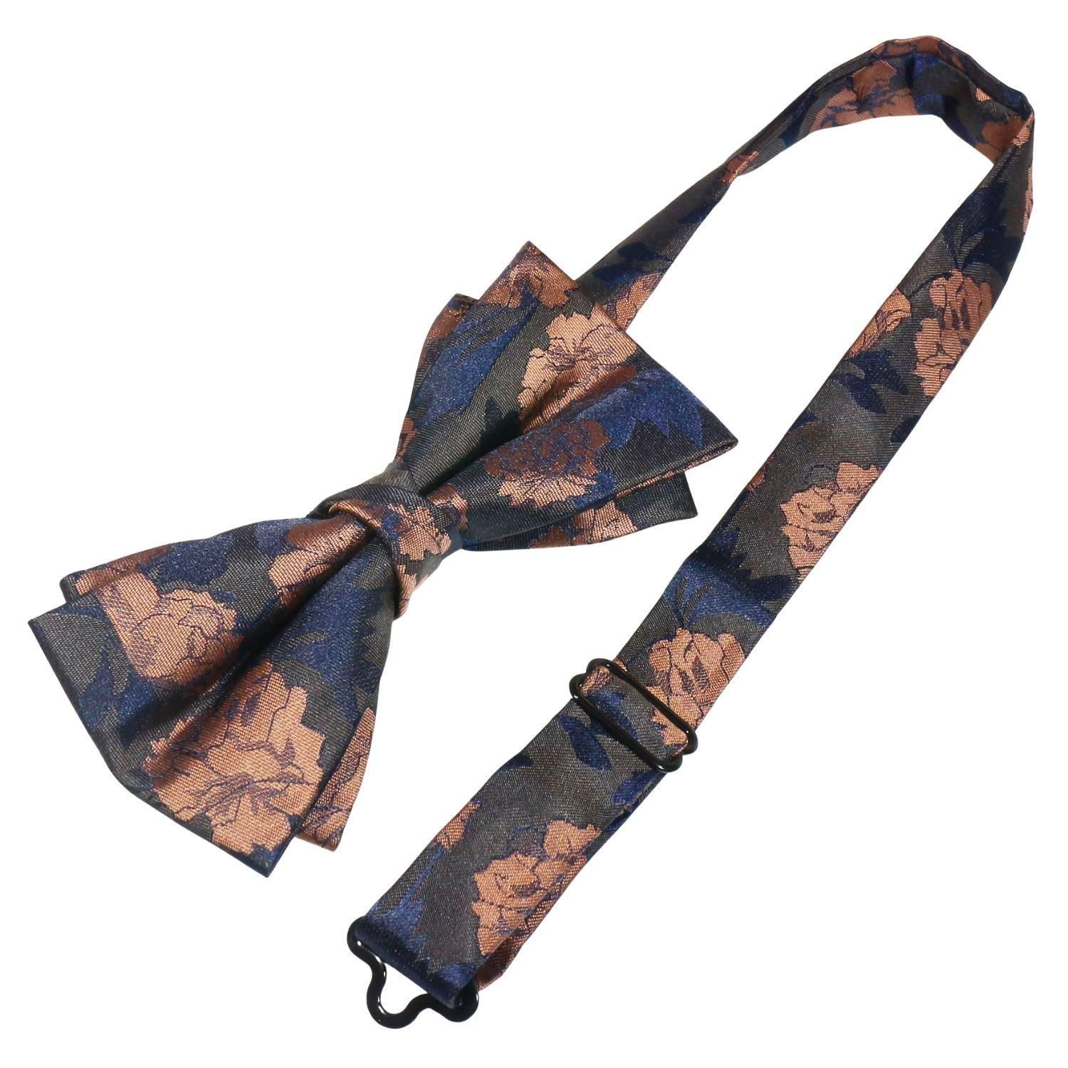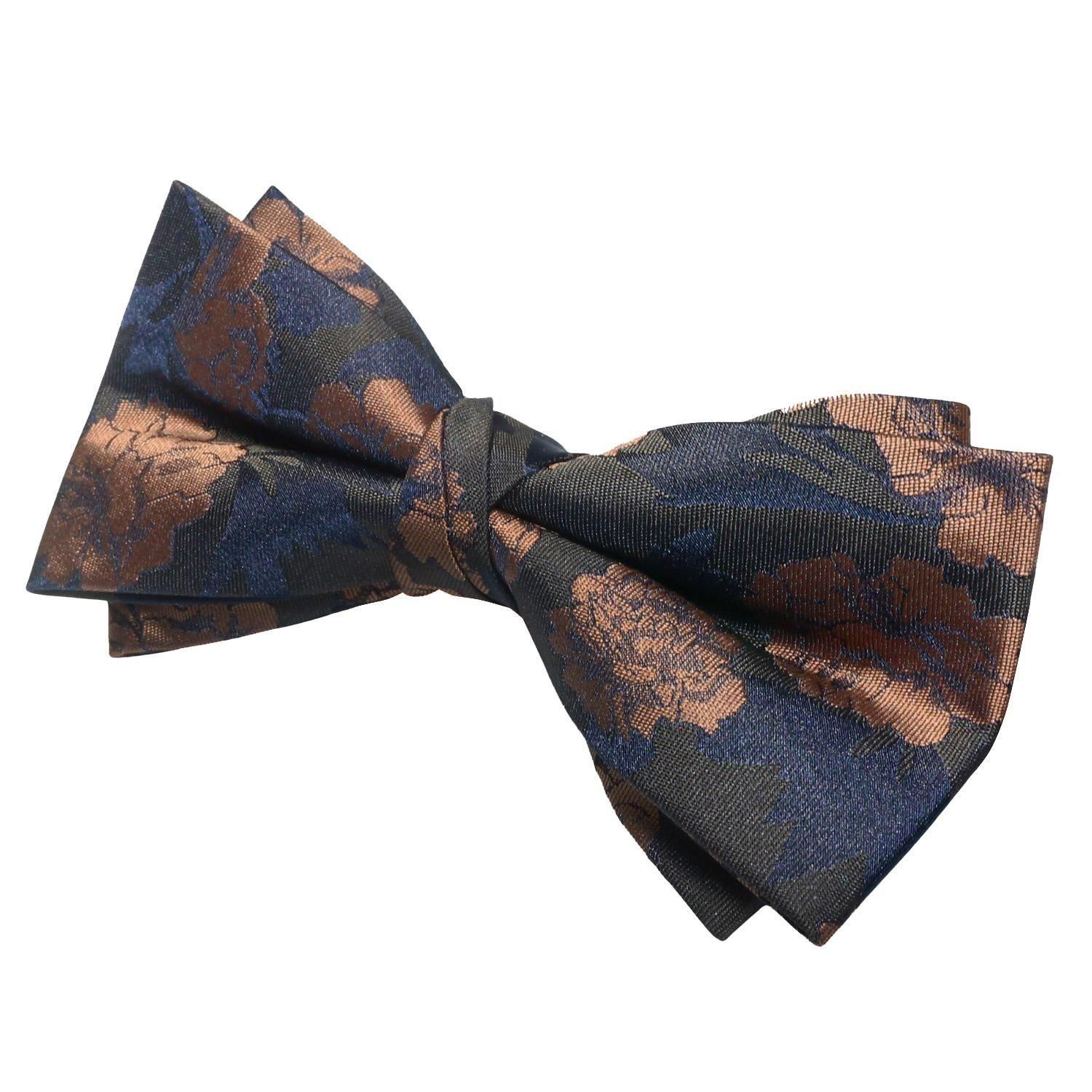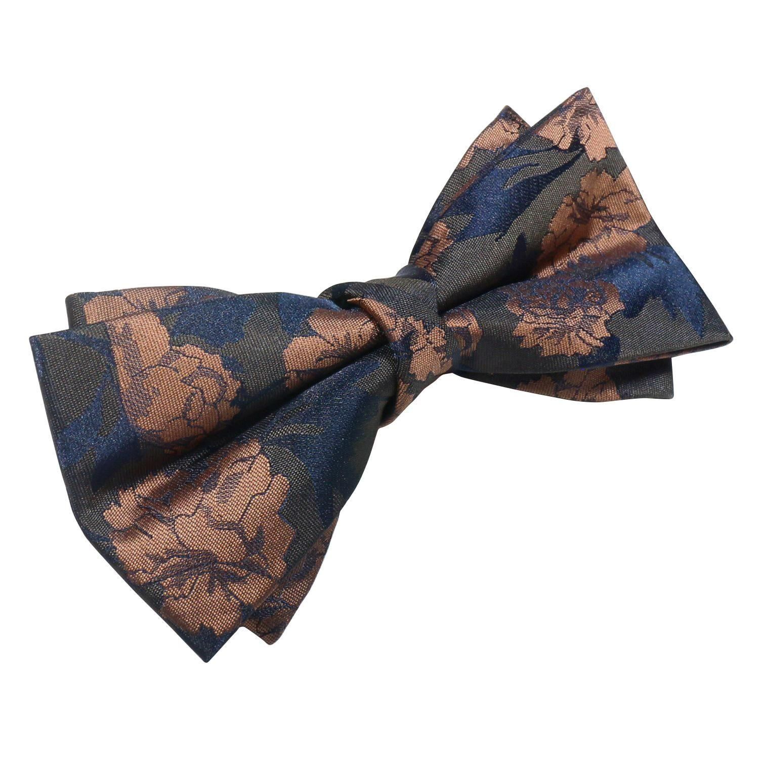 ダークブラウン コッパー 花柄 フラワー 変形 蝶ネクタイ ボウタイ